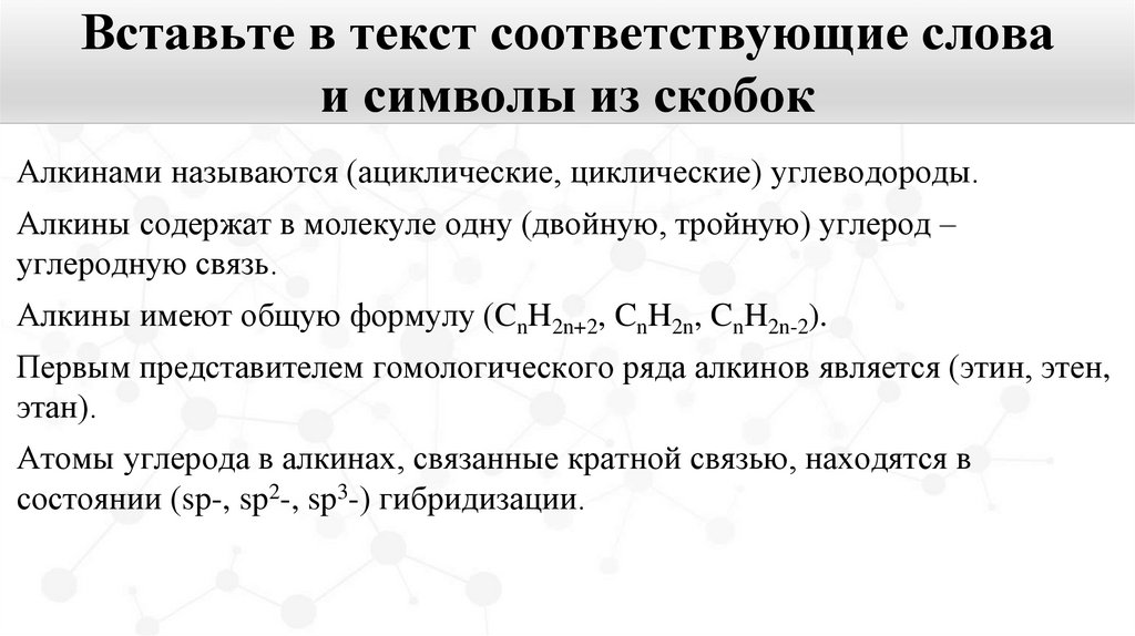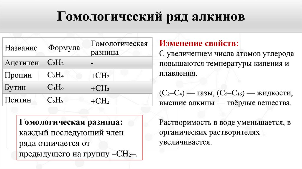 Урок 10. Алкины состав и особенности строения, гомологический ряд. Ацетилен — простей