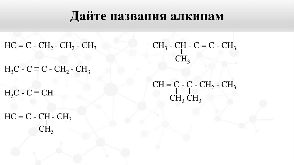 Дайте названия алкинамHC ≡ C - СH2 - СH2 - СH3