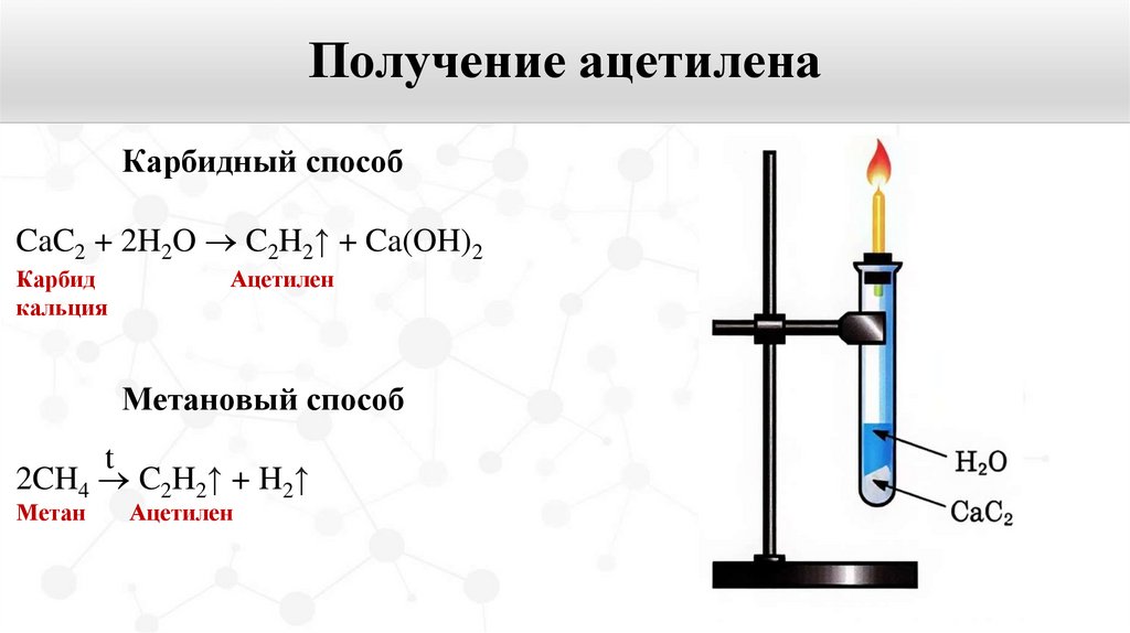 CaC2 + 2H2O C2H2↑ + Ca(OH)2