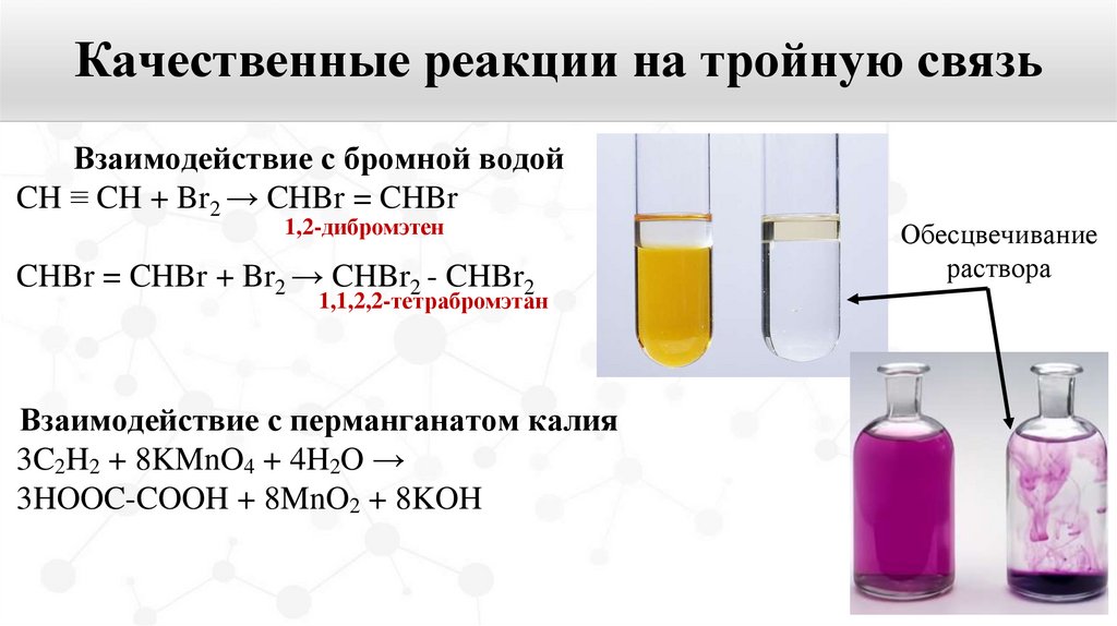 Качественные реакции на тройную связьВзаимодействие с бромной водой