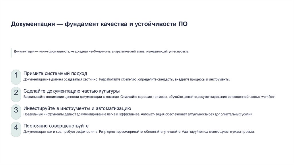 Документация — фундамент качества и устойчивости ПОДокументация — это не формальность, не досадная необходимость, а стратегический актив, определяющий успех проекта.