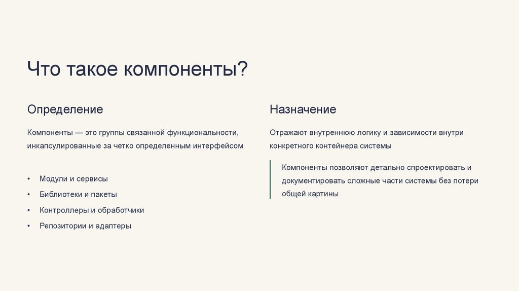 что определенная функциональность должна быть реализована только в одном компоненте и не должна дублироваться ни в одном другом