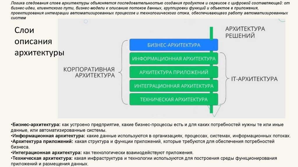 В информационных технологиях архитектура также включает в себя принципы построения системы и действующие в её