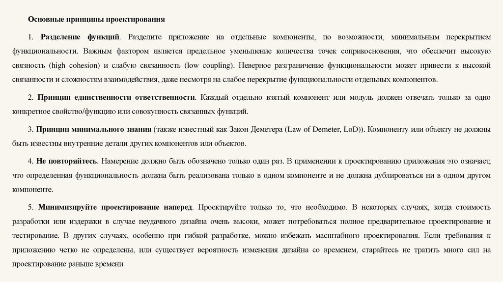 Основные принципы проектирования1. Разделение функций. Разделите приложение на отдельные компоненты, по возможности, минимальным перекрытием