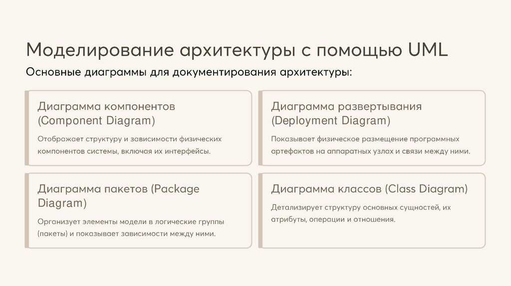 Основное назначение архитектуры — описание использования или взаимодействия основных элементов и компонентов