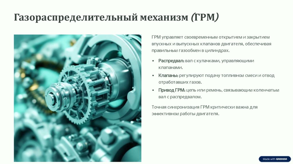Газораспределительный механизм (ГРМ)ГРМ управляет своевременным открытием и закрытием