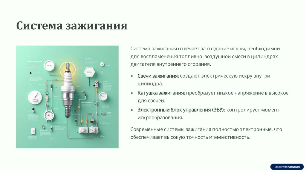 Система зажиганияСистема зажигания отвечает за создание искры, необходимой