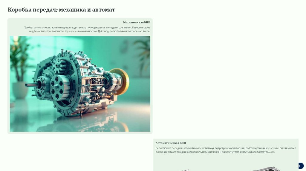 Переключает передачи автоматически, используя гидротрансформатор или роботизированные системы. Обеспечивает