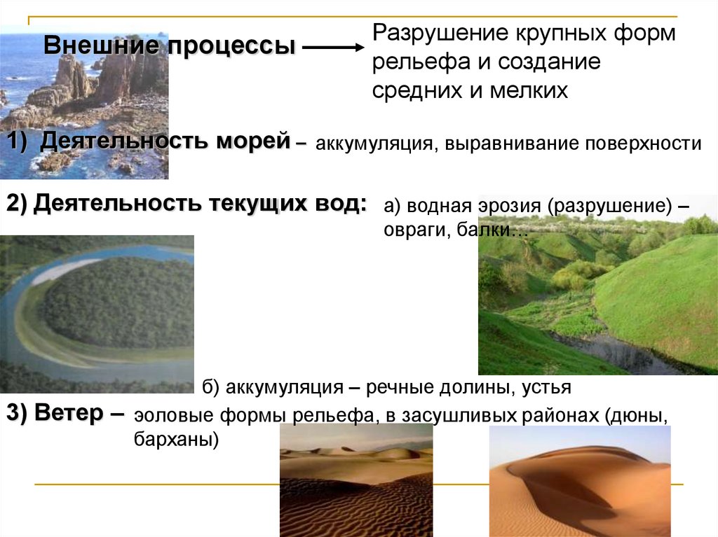 1) Деятельность морей – аккумуляция, выравнивание поверхности