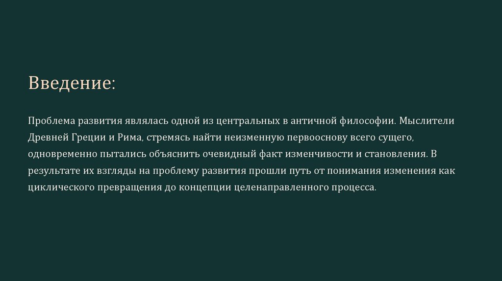 Введение:Проблема развития являлась одной из центральных в античной философии. Мыслители