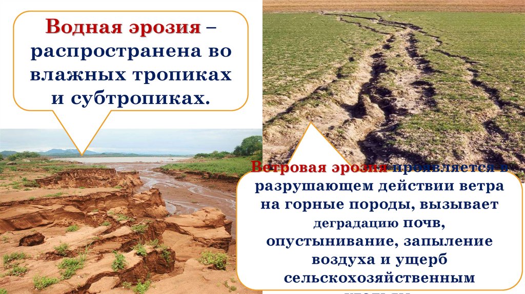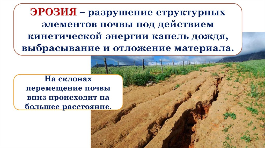 ЭРОЗИЯ – разрушение структурныхэлементов почвы под действием