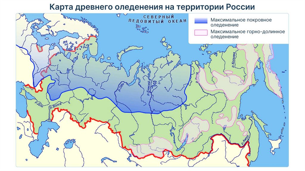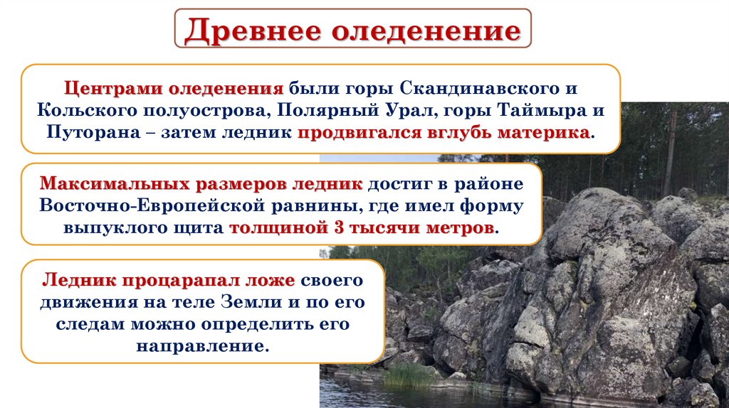 Древнее оледенениеЦентрами оледенения были горы Скандинавского и