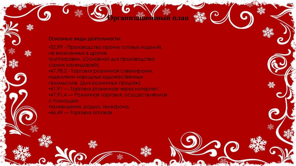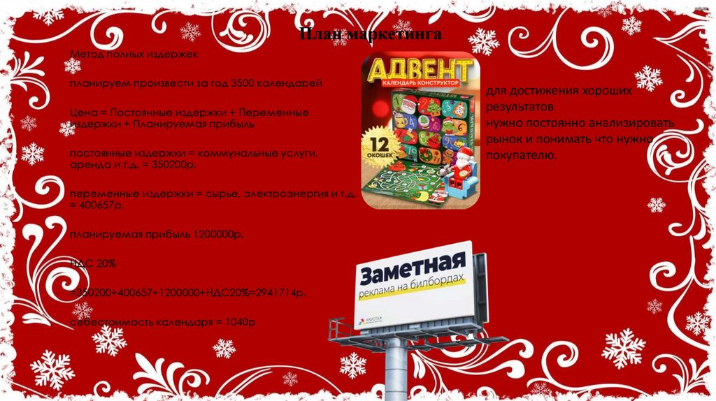 БИЗНЕС-ПРОЕКТпо производству рождественского календаря