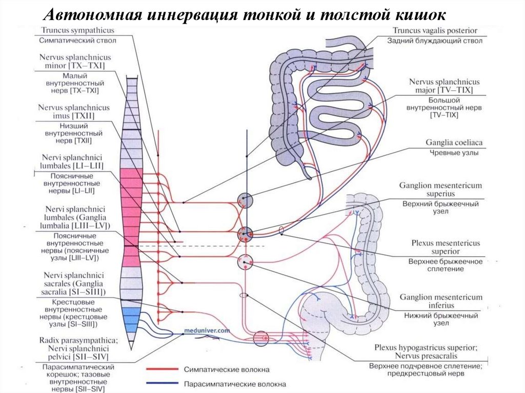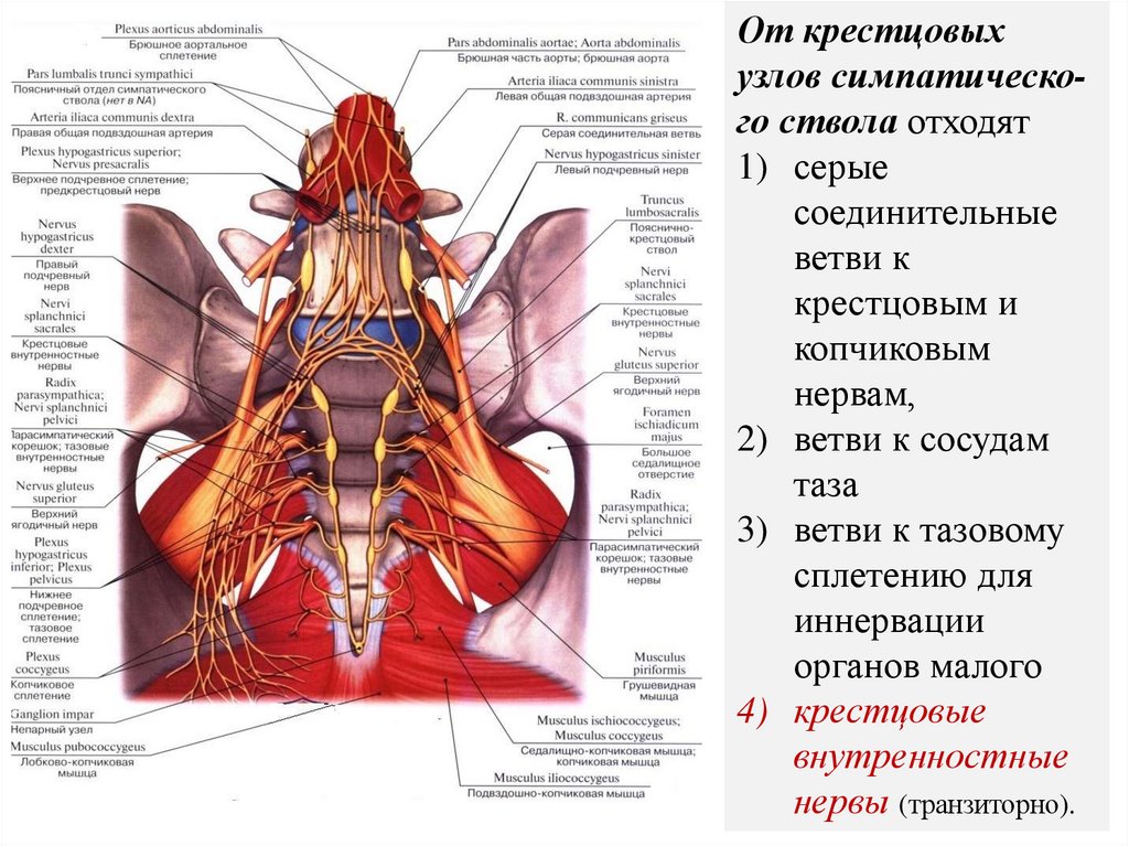 симпатического ствола. Постганглионарные волокна образуют сренее и нижнее прямокишечное
