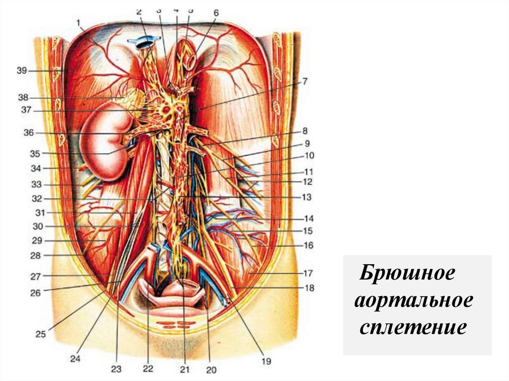 брюшного аортальноного и яичкового сплетений (по ходу яичковых