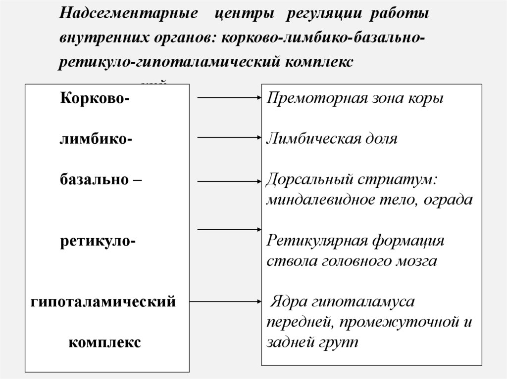 Надсегментарные центры регуляции работывнутренних органов: корково-лимбико-базальноретикуло-гипоталамический комплекс