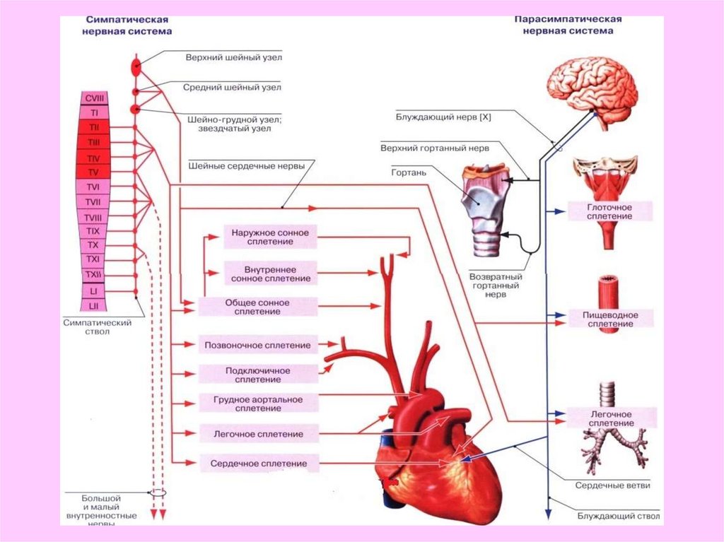 внутренней секреции, состояния сосудов, адаптацию и гомеостазОтделы автономной нервной системы