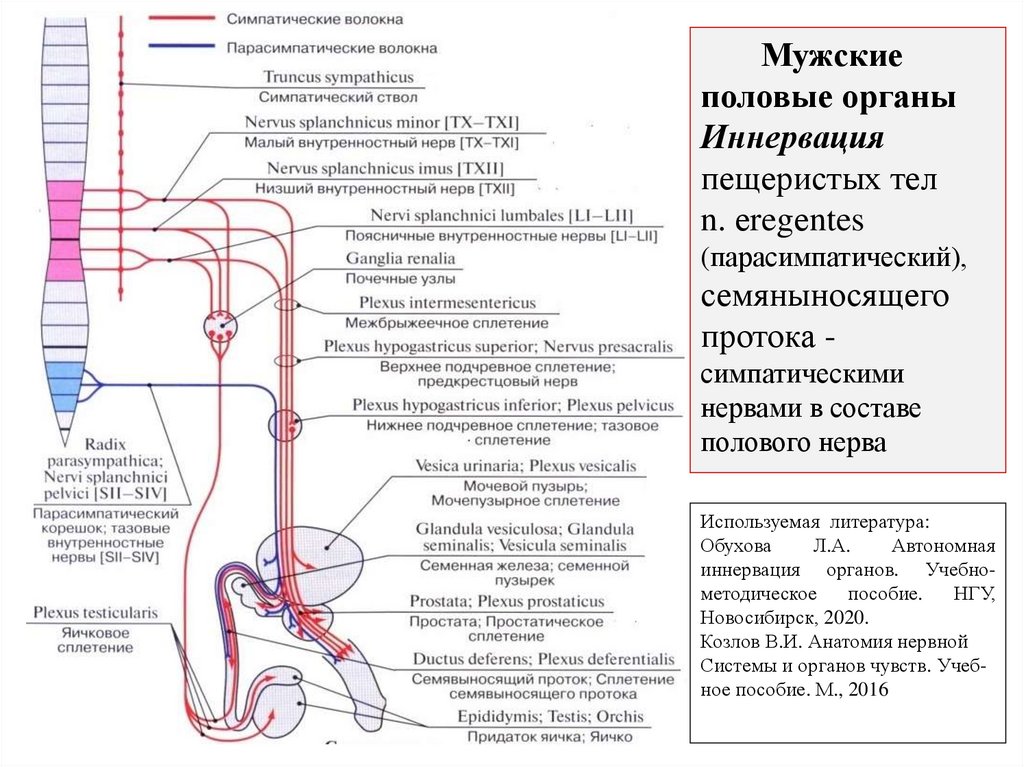 Парасимпатическая иннервация: крестцовые парасимпатические ядра сегментов SIISIV→ тазовые внутренностные