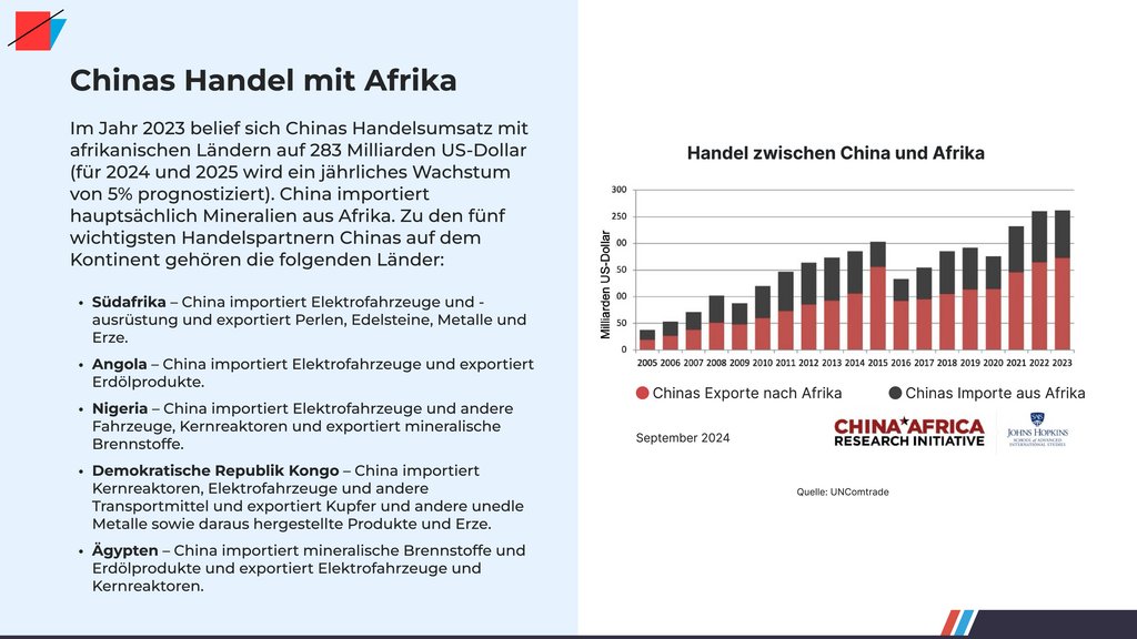 Energieressourcen. China wiederum erhält natürliche Märkte für seine preiswerten und