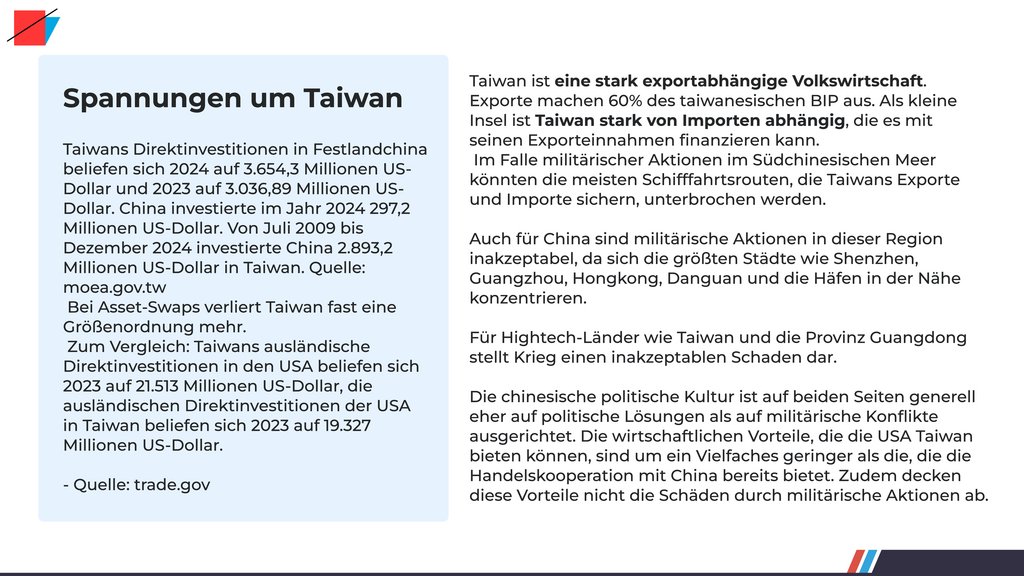 Taiwan: Handel mit Festlandchina und den US
