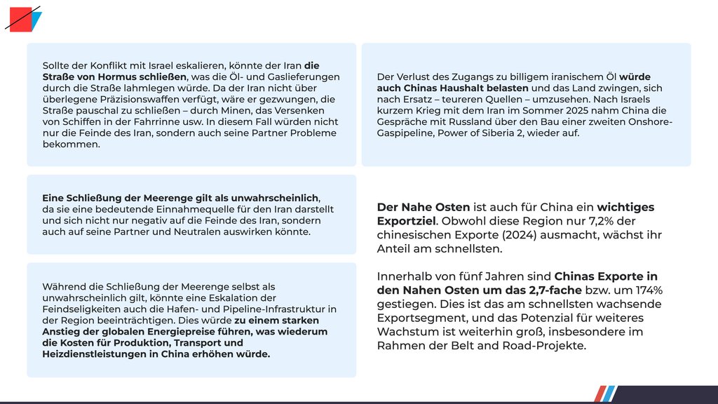 chinesischer Exporte. Auch Öl- und Gasimporte aus dem Nahen Osten sind für die chinesische Wirtschaft