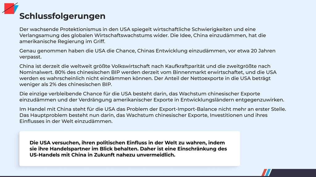 SchlussfolgerungenDer wachsende Protektionismus in den USA spiegelt wirtschaftliche Schwierigkeiten und eine