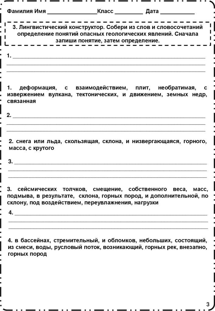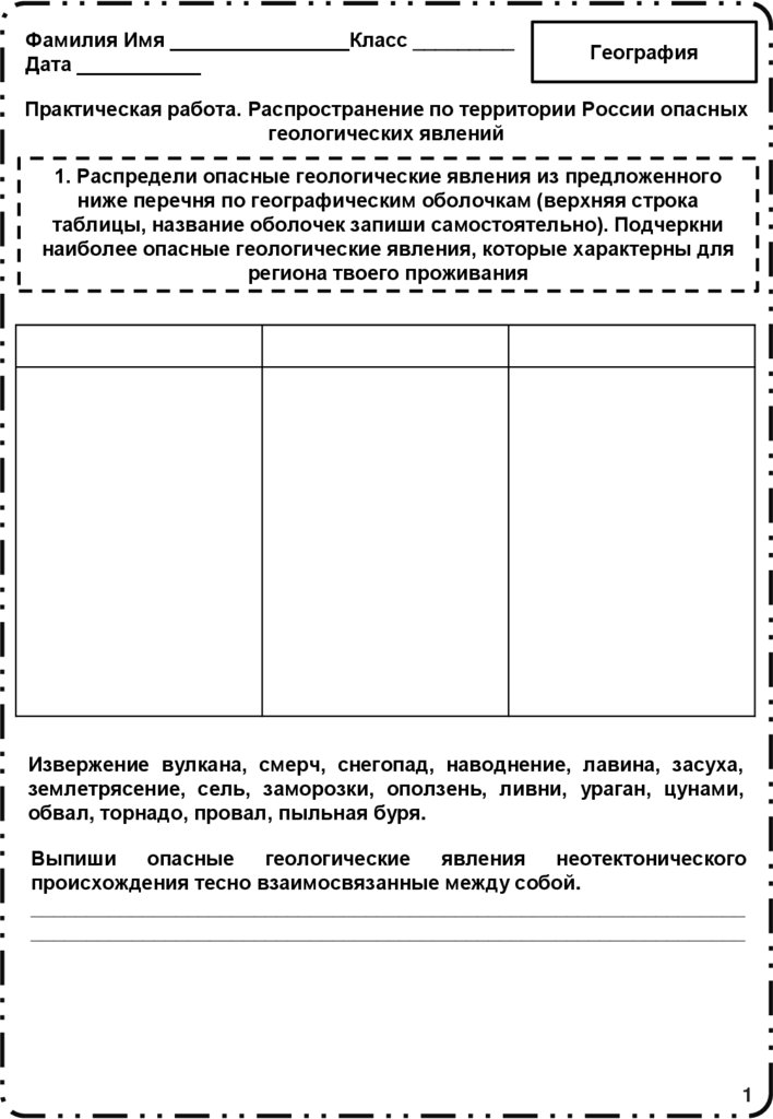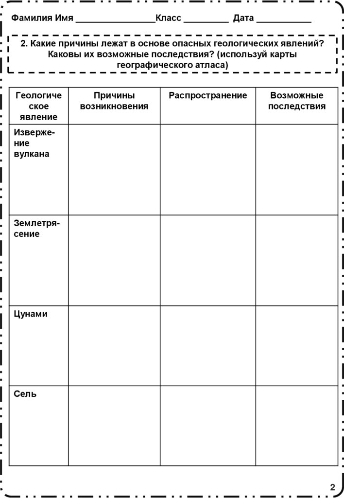 Фамилия Имя ________________Класс _________ Дата ___________2. Какие причины лежат в основе опасных геологических явлений?
