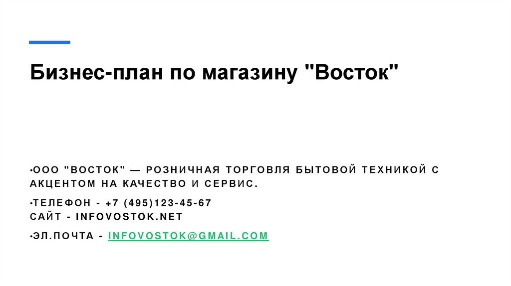 Бизнес-план по магазину "Восток"•О О О " В О С Т О К " — Р О З Н И Ч Н А Я Т О Р Г О В Л Я Б Ы Т О В О Й Т Е Х Н И К О Й С