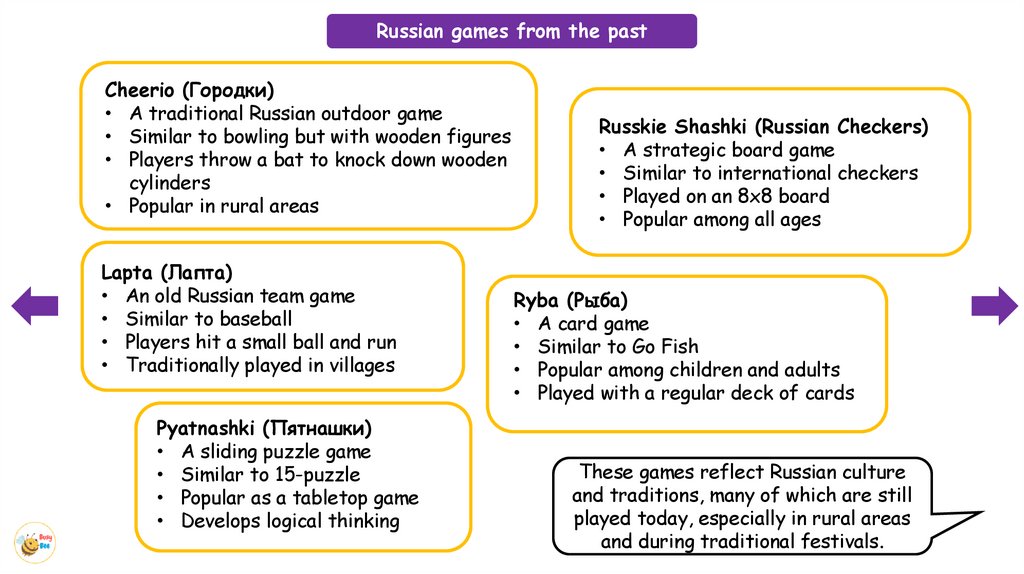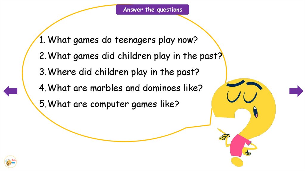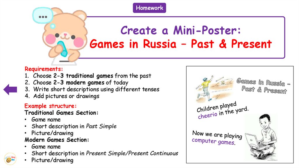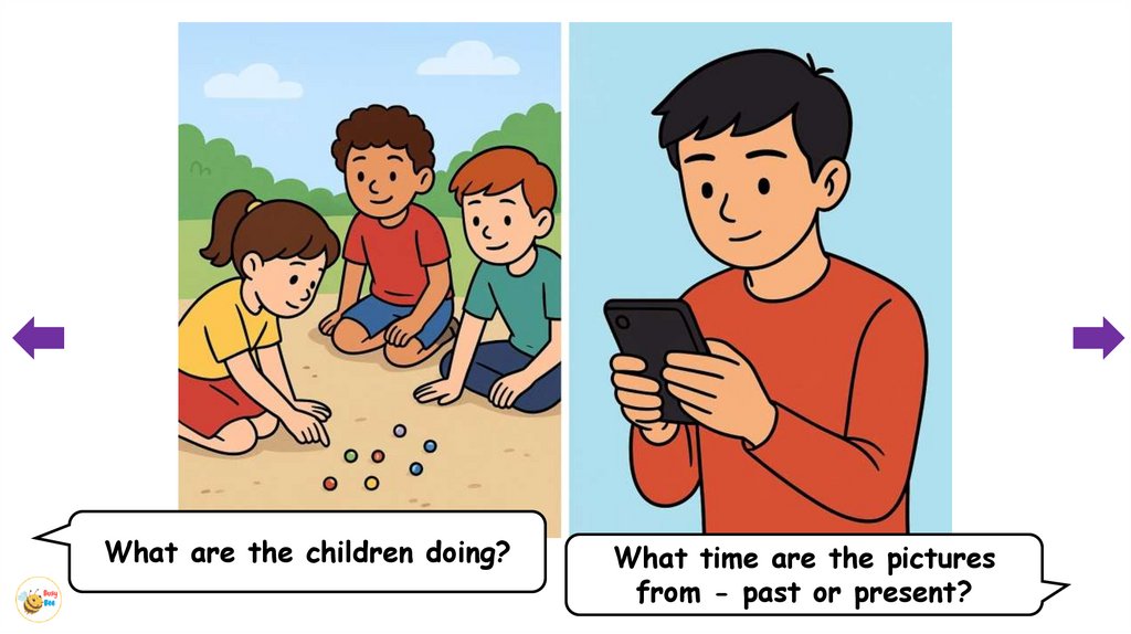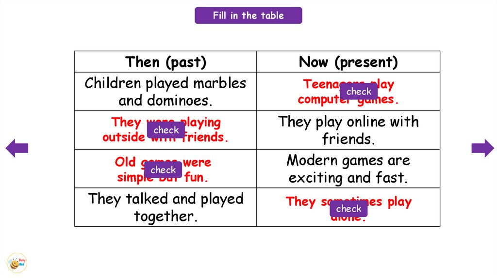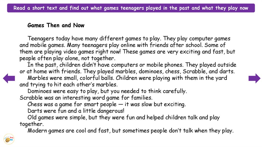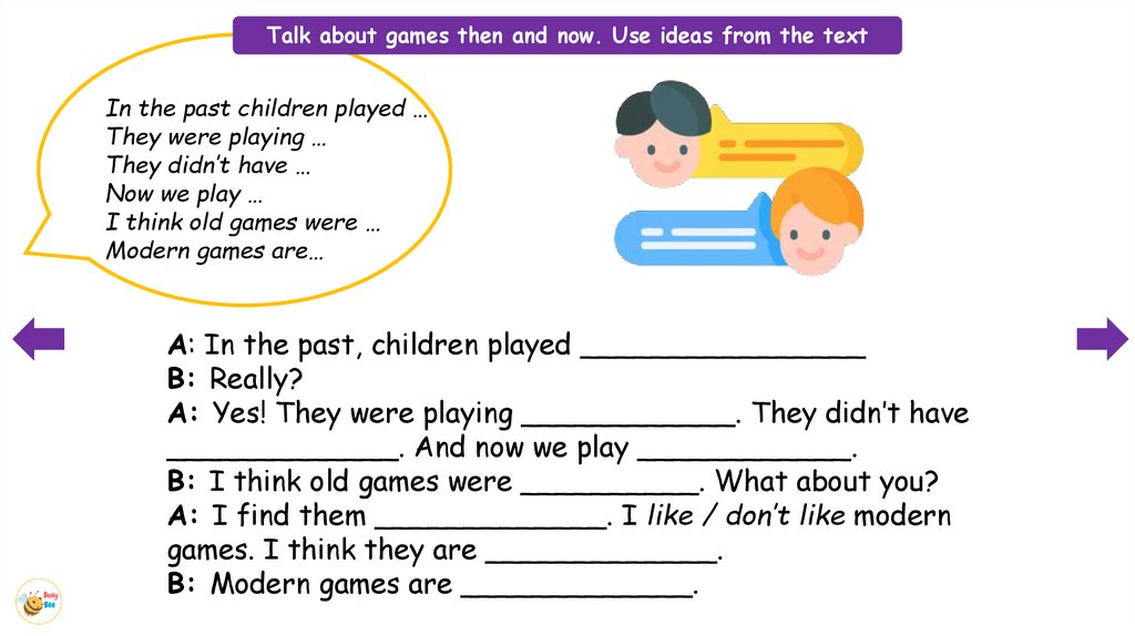 Talk about games then and now. Use ideas from the textIn the past children played …