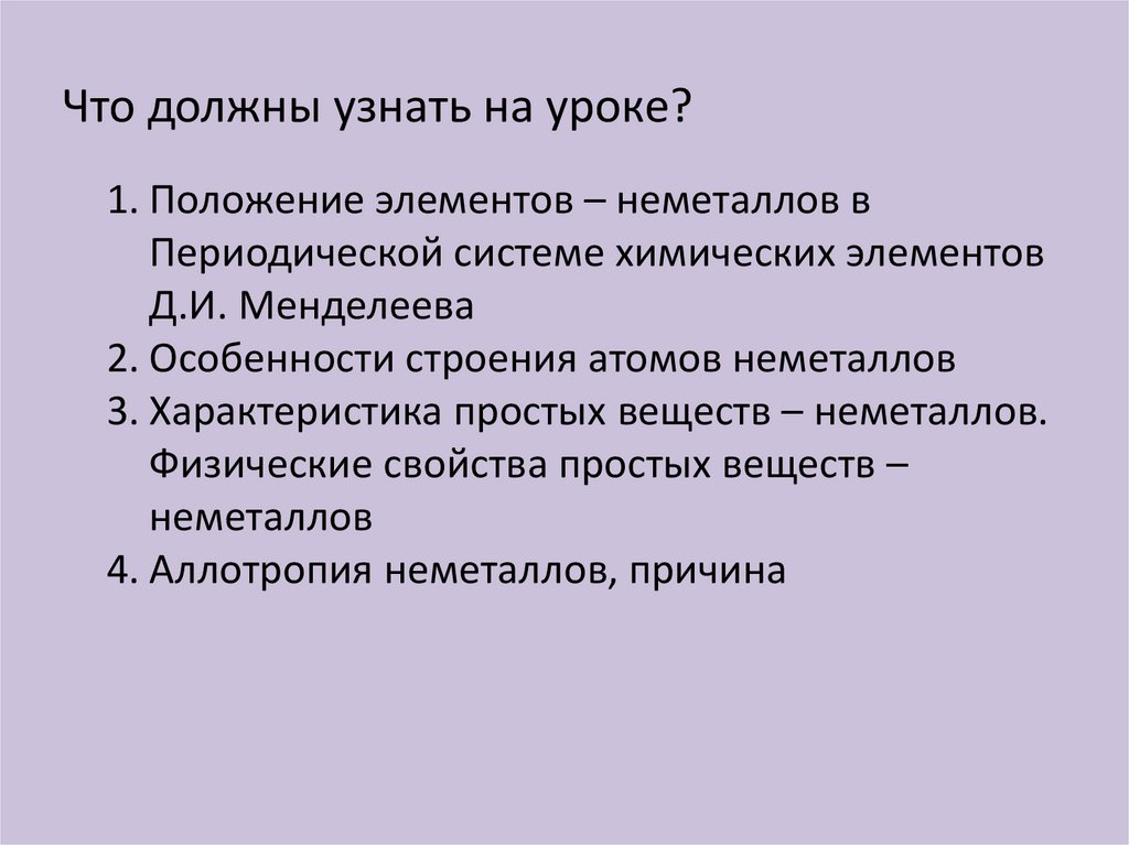 Что должны узнать на уроке?1. Положение элементов – неметаллов в