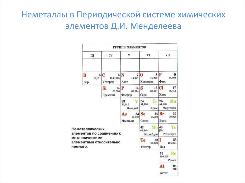 Неметаллы в Периодической системе химическихэлементов Д.И. Менделеева