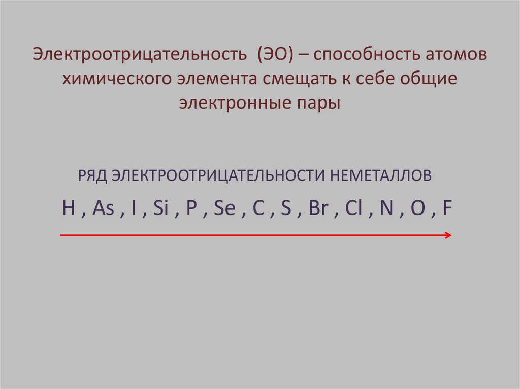 РЯД ЭЛЕКТРООТРИЦАТЕЛЬНОСТИ НЕМЕТАЛЛОВ