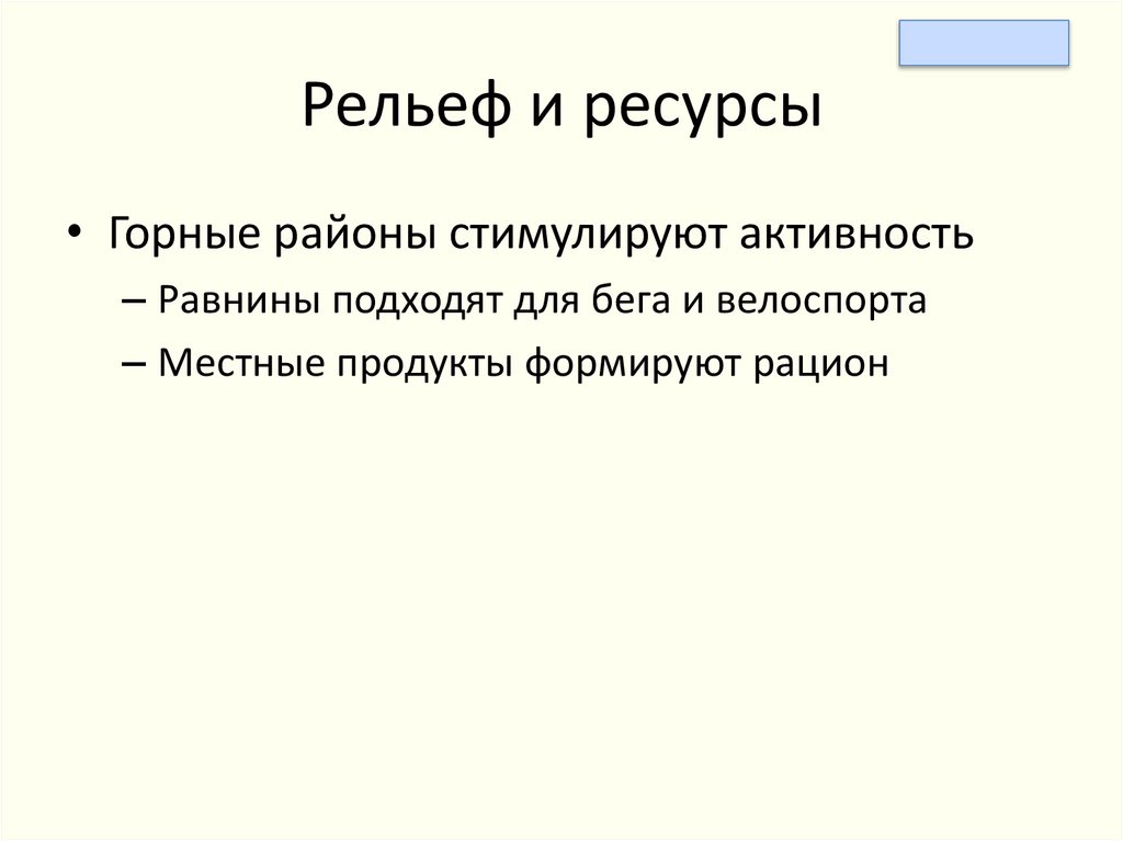 Рельеф и ресурсы• Горные районы стимулируют активность
