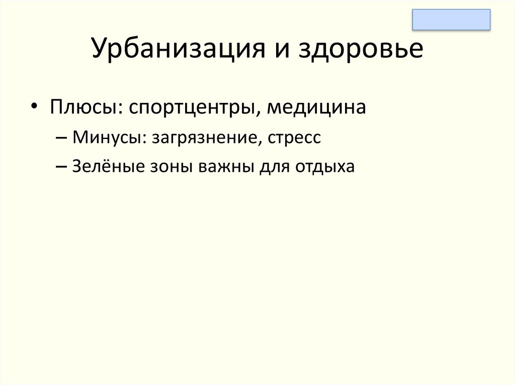 Урбанизация и здоровье• Плюсы: спортцентры, медицина