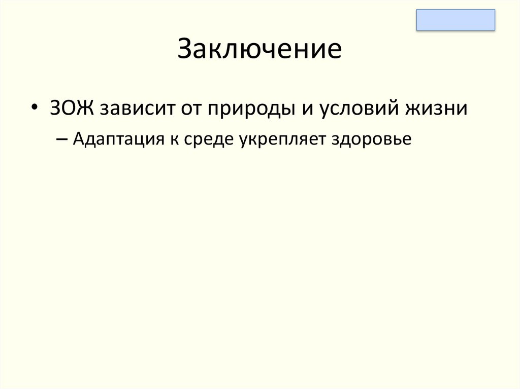 Заключение• ЗОЖ зависит от природы и условий жизни