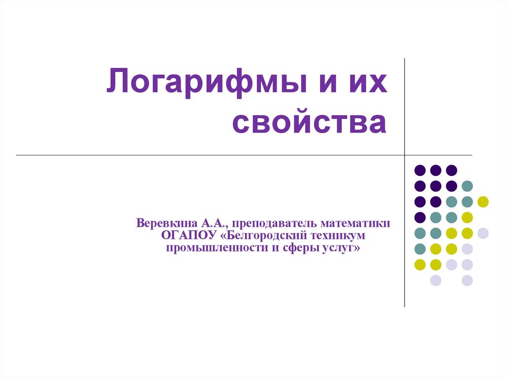 Веревкина А.А., преподаватель математикиОГАПОУ «Белгородский техникум