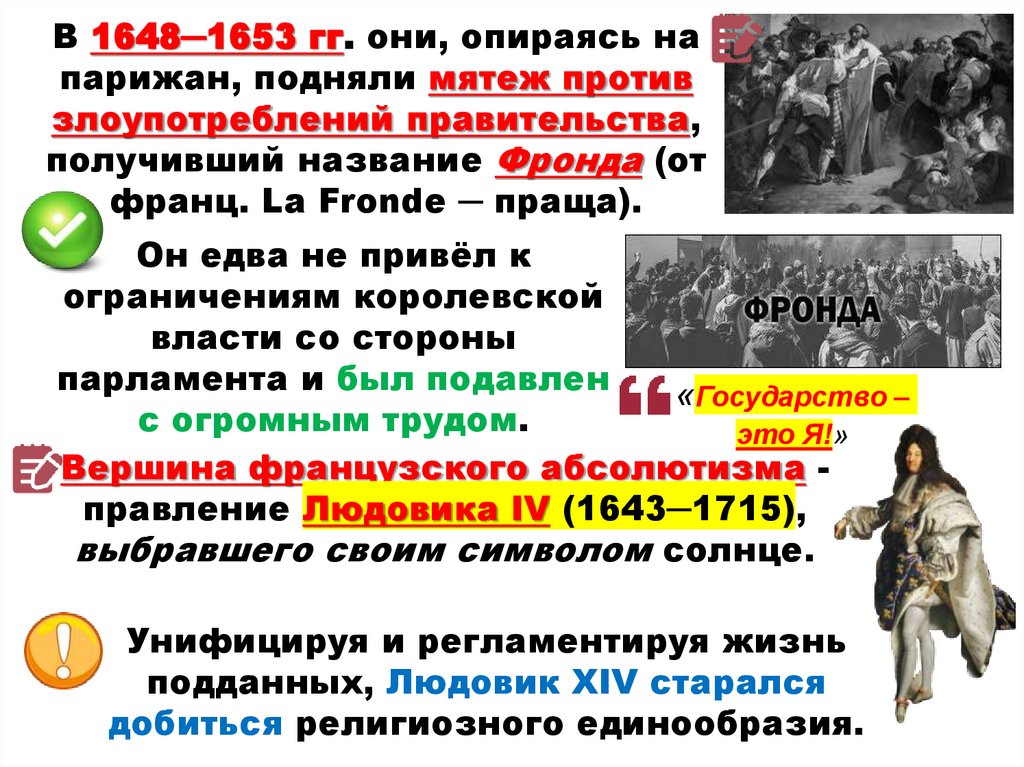 В 1648─1653 гг. они, опираясь напарижан, подняли мятеж против