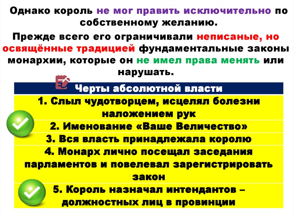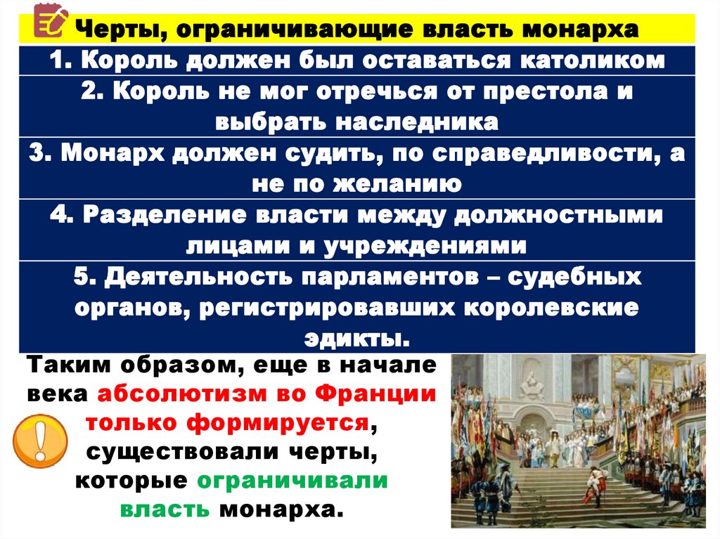 Черты, ограничивающие власть монарха1. Король должен был оставаться католиком