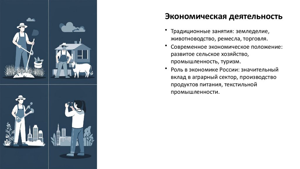 Экономическая деятельность• Традиционные занятия: земледелие,