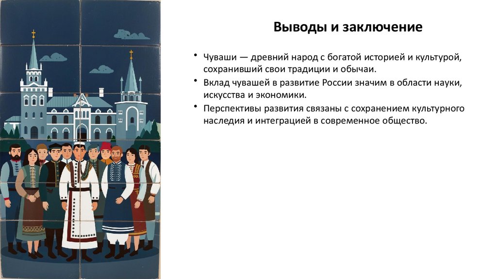 Выводы и заключение• Чуваши — древний народ с богатой историей и культурой,