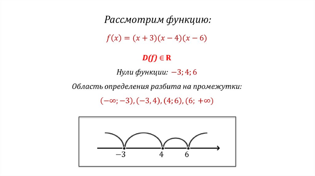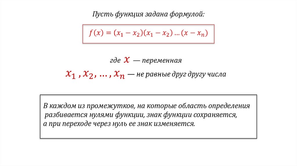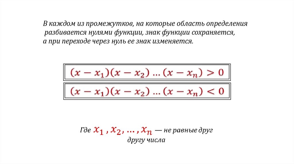 разбивается нулями функции, знак функции сохраняется,