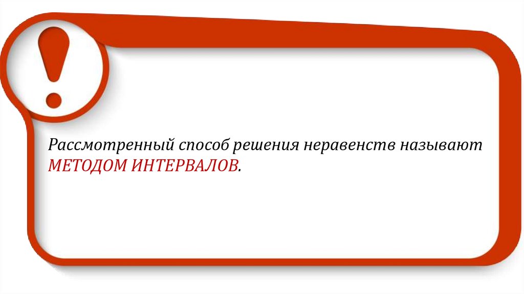 Рассмотренный способ решения неравенств называютМЕТОДОМ ИНТЕРВАЛОВ.