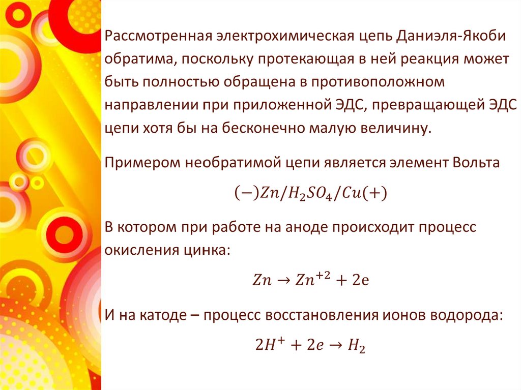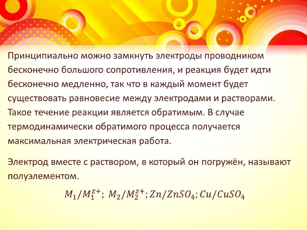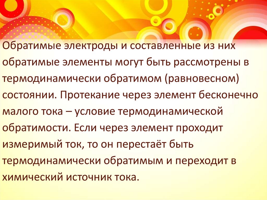 Обратимые электроды и составленные из нихобратимые элементы могут быть рассмотрены в