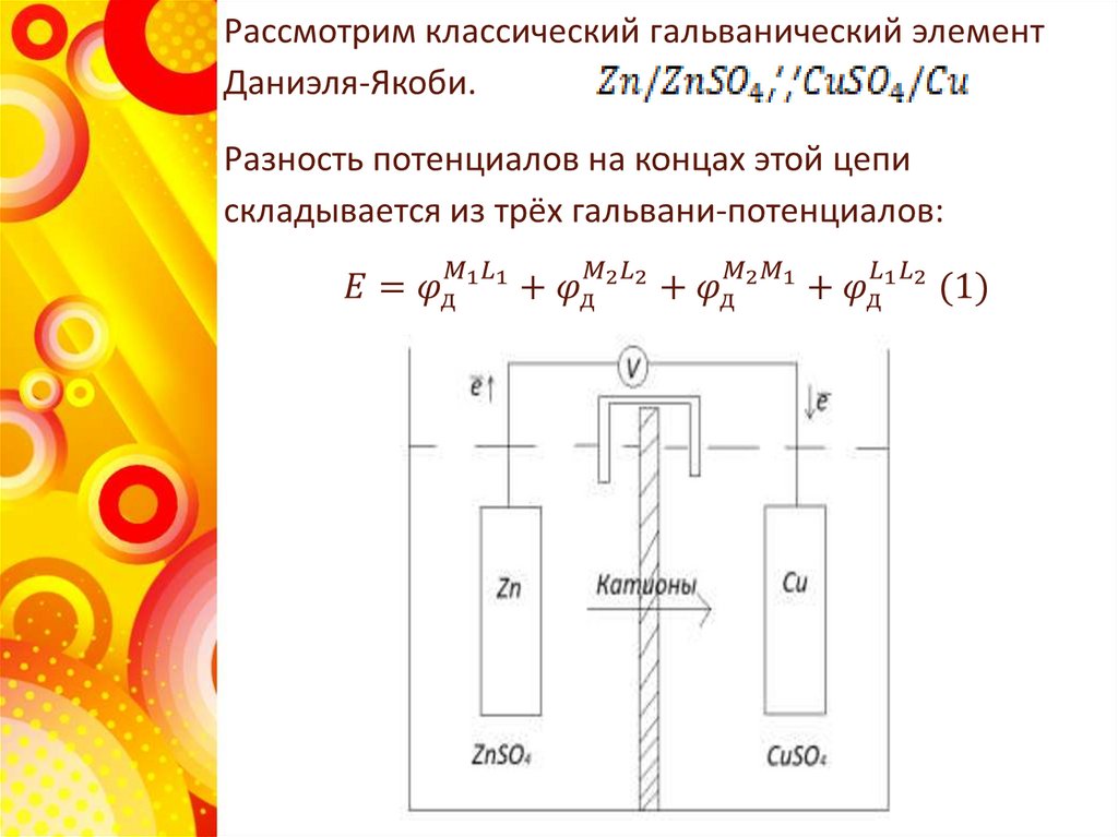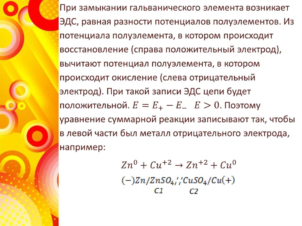измерения ЭДС. Внутренняя цепь и есть гальванический элемент.