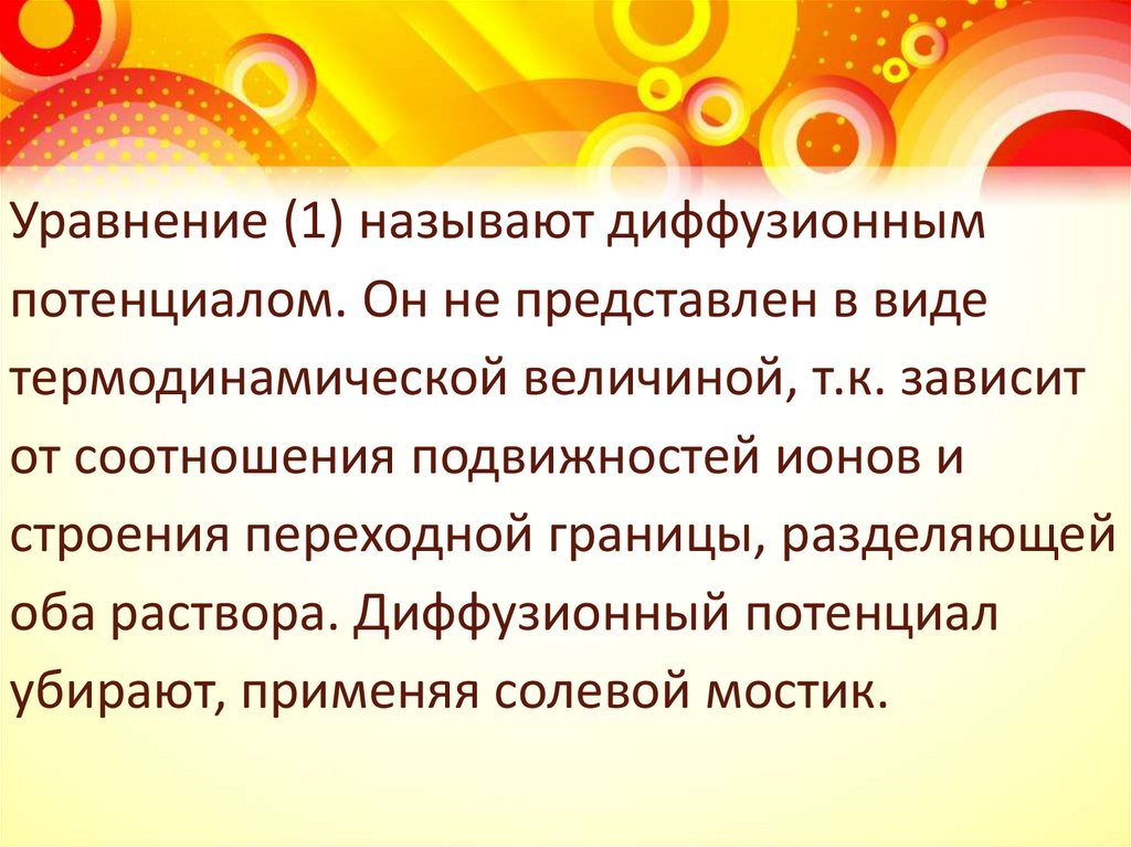 Уравнение (1) называют диффузионнымпотенциалом. Он не представлен в виде