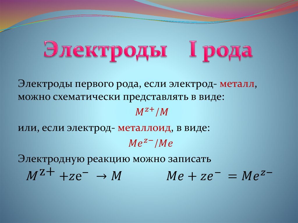 Электроды первого рода, если электрод- металл,можно схематически представлять в виде: