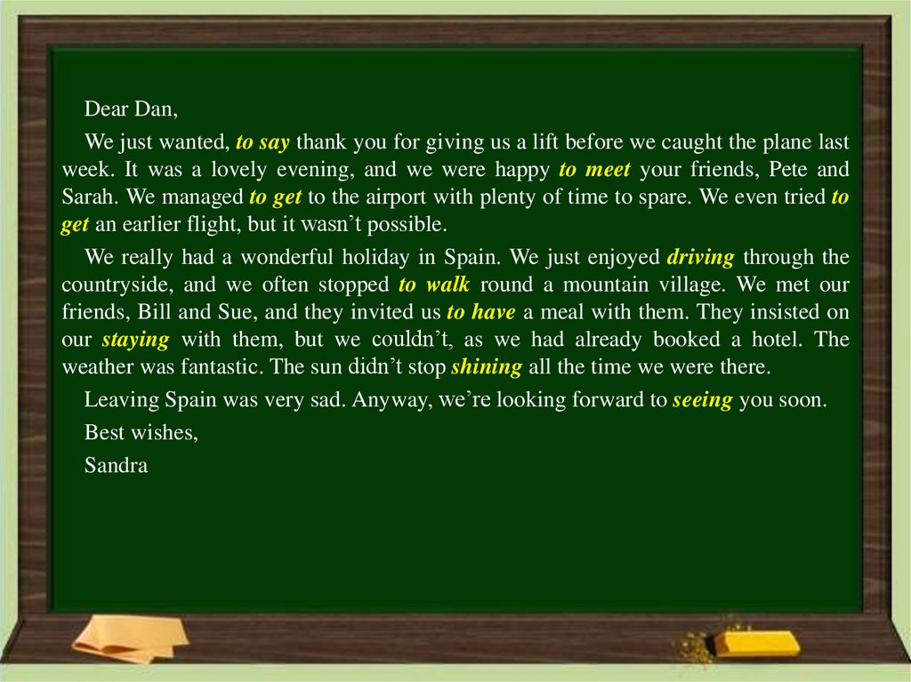 Dear Dan,We just wanted, say/to say/saying thank you for giving us a lift before we caught