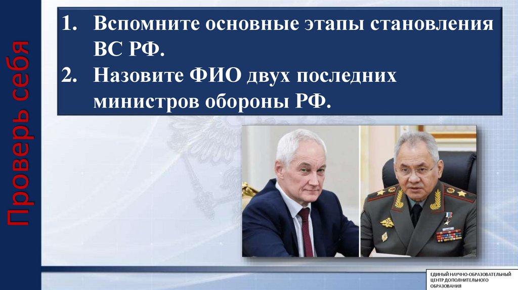 Проверь себяЕДИНЫЙ НАУЧНО-ОБРАЗОВАТЕЛЬНЫЙ