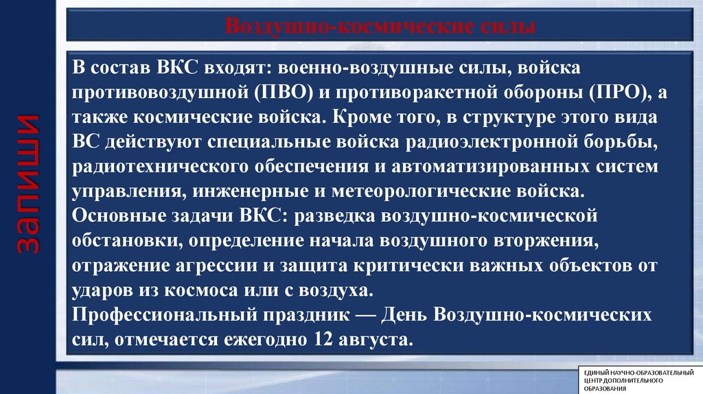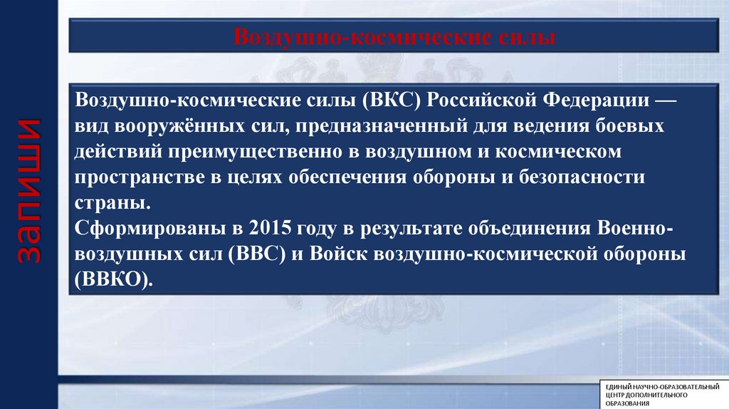 Воздушно-космические силы (ВКС) Российской Федерации —