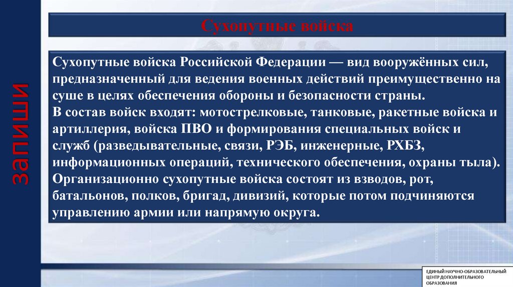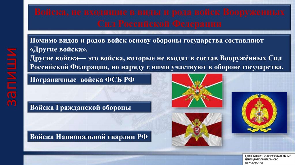 запишиВойска, не входящие в виды и рода войск Вооруженных